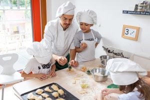 Dafür haben wir im Kita-Garten eine Ackerfläche geschaffen, auf der die Kinder in kleinen Teams säen, gießen und ernten, begleitet von den Pädagog:innen. Das eigene Gemüse können die Kinder frisch probieren. Sofern möglich, verarbeiten sie es auch in unserer kindgerechten Küche weiter.