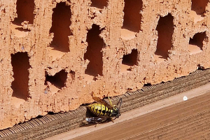 Das vielseitige Insektenhotel im INA.KINDER.GARTEN Habersaathstraße wird gut besucht: Warme Sonnenstrahlen und liebevoll gepflanzte Frühblüher locken immer weitere Bewohner:innen – mit und ohne Flügel – an.