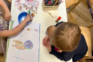 Die Kinder sammelten Ideen und Rahel erstellte daraus – zeitgemäß mithilfe von KI – den ersten Entwurf für die Erzählung „Rapunzel und das Armband“. Beim Vorlesen erkannten die Kinder sofort ihre eigenen Beiträge wieder – und machten sich voller Begeisterung daran, bunte Bildkarten mit Farben, Glitzer und Stickern zu gestalten. Ein kreatives Projekt, das vielleicht sogar als Video fortgeführt wird.