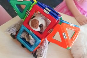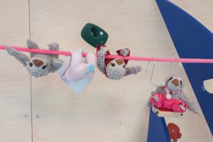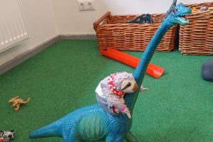 Normalerweise sind Faultiere für ihre Trägheit bekannt – doch Schmolli lässt sich davon nicht ausbremsen! Die Kinder im INA.KINDER.GARTEN Rosenheimer Straße haben ihrem Plüsch-Freund im Rollstuhl und seiner Faultier-Bande nämlich einen ganzen Fuhrpark bereitgestellt. Auf einmal brummt und summt es, und die Faultiere flitzen durch die Kita. Selbst ein Dinosaurier muss als lustiges Reittier herhalten, doch der findet das gar nicht komisch. Na dann: Volle Fahrt voraus!