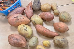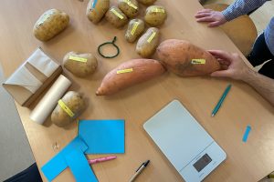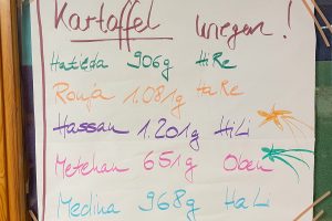 Dafür brachten Kinder und Pädagog:innen jeweils eine Kartoffel mit in die Kita. Auch die Eltern waren mit Eifer dabei und fuhren extra zum lokalen Kumpir-Laden. Mindestens 125 Kartoffeln waren im Rennen, von denen innerhalb jeder Bezugsgruppe die mit dem größten Gewicht gewählt wurde.