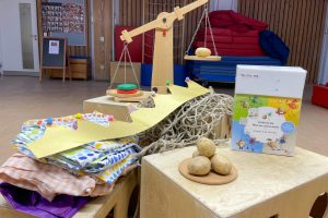 Die fünf Final-Kartoffeln aus den Gruppen wurden dann vor der gesamten Kita-Gemeinschaft gewogen – und anschließend konnte unter großem Applaus der Kartoffelkönig gekrönt werden. Zur Krone gab es noch eine Urkunde und einen Kartoffelstampfer dazu. Abschließend wurde eine Kartoffelgeschichte vorgelesen.