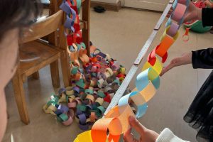 Die Kitas Bülowstraße und Ella-Barowsky-Straße liefern sich ein heißes Wettrennen: Welcher INA.KINDER.GARTEN wird die längste Faschings-Girlande basteln? Alle Kinder (und Fachkräfte!) der beiden Kitas sind mit Eifer und Vorfreude dabei – es wird geschnippelt und geklebt, gemessen und gelacht. Denn egal, welche Girlande am Ende gewinnt: Im Vordergrund stehen Spaß und Stimmung. Wir halten euch auf dem Laufenden … bis bald, ihr Jecken!