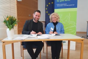 Neben dem INA.KINDER.GARTEN Flurweg, wo das Programm bereits gestartet ist, war damit eine weitere unserer Kitas mit ihrer Bewerbung erfolgreich. Die feierliche Unterzeichnung des Vertrags durch Christoph Keller, Bezirksstadtrat für Jugend, Familie und Gesundheit, markierte den Start für das mehrstufige Programm für gute Gesundheit und Bildungschancen von Kindern und Pädagog:innen.