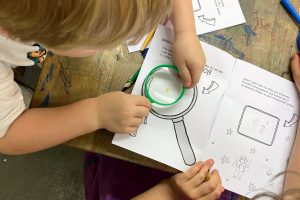 Im INA.KINDER.GARTEN Augustenburger Platz haben die älteren Kinder einen Blick durch die Lupe geworfen und allerhand über Bakterien, Zellen und Viren gelernt. Das Projekt „Von wegen unsichtbar!“ in Kooperation mit der benachbarten Charité vermittelte ihnen kindgerecht, welche Wesen uns normalerweise verborgen bleiben – und welchen Einfluss sie trotzdem auf unseren Körper und unsere Gesundheit haben. Eines der Ziele war zum Beispiel, die Gründe für Händewaschen und weitere Hygieneregeln verständlich zu machen. Kreative Arbeitsblätter und Spiele regten dabei die Neugier besonders an.